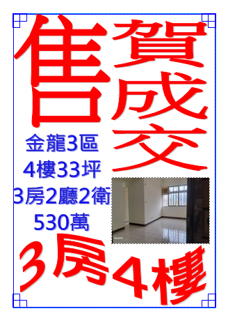 案名︰金龍特區第1區4樓3房2廳2衛4樓.