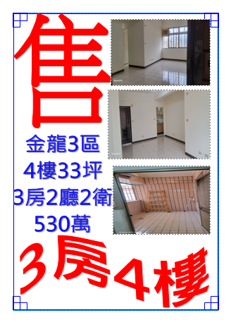 案名︰金龍特區第1區4樓3房2廳2衛4樓.