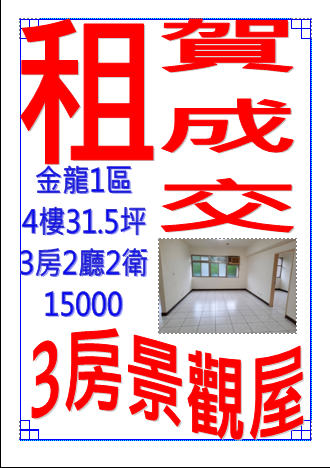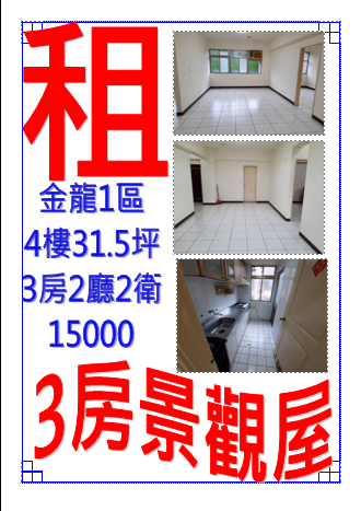 租公寓3房2聽2衛4樓金龍1區請電:0930-366632 02-26461721
